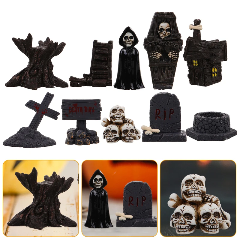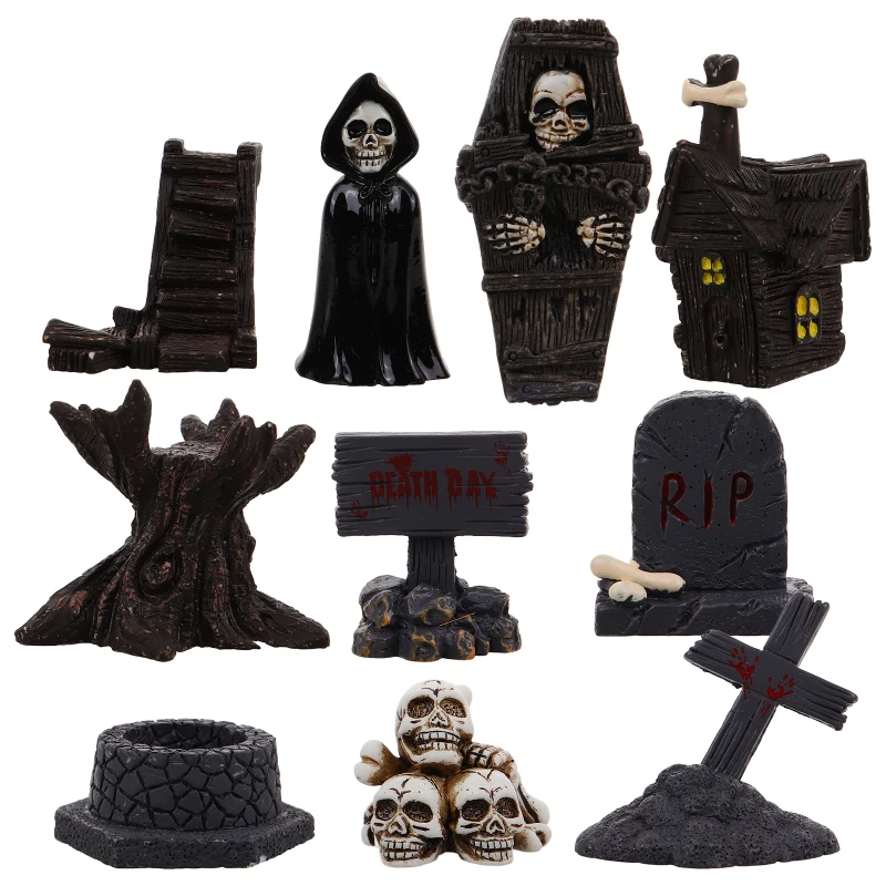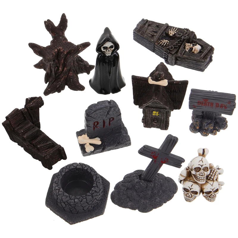 10 Pcs Desktop Baubles Mini Tombstones Figurine Haunted House Resin Miniature Accessories Halloween