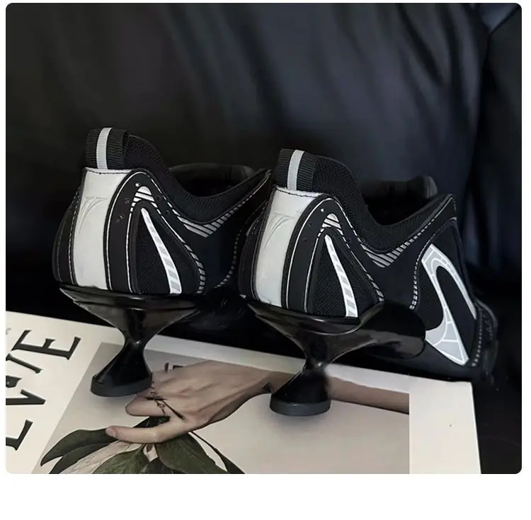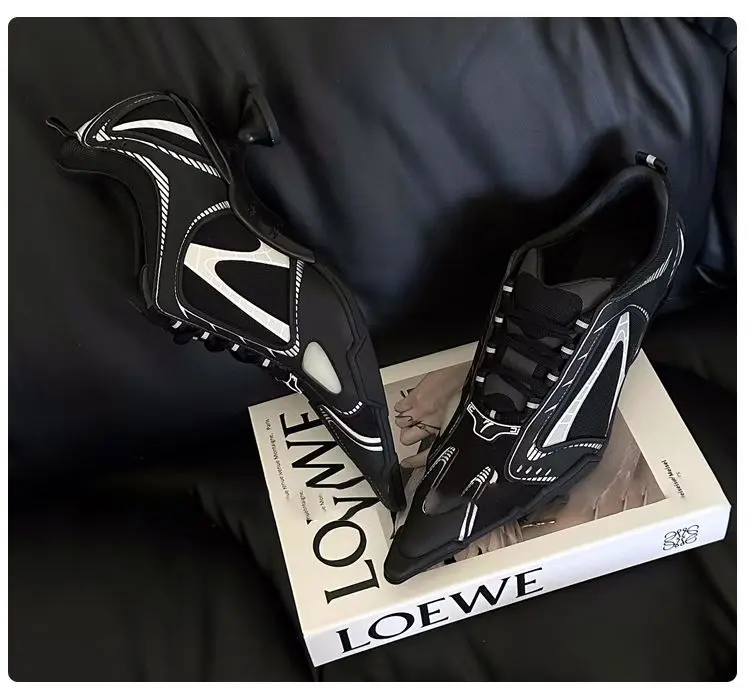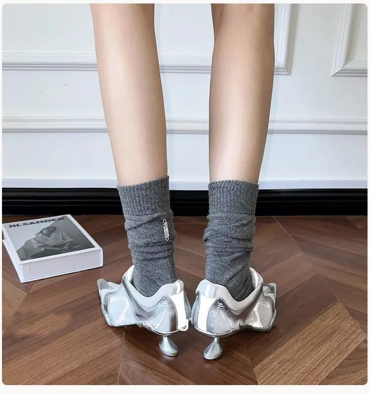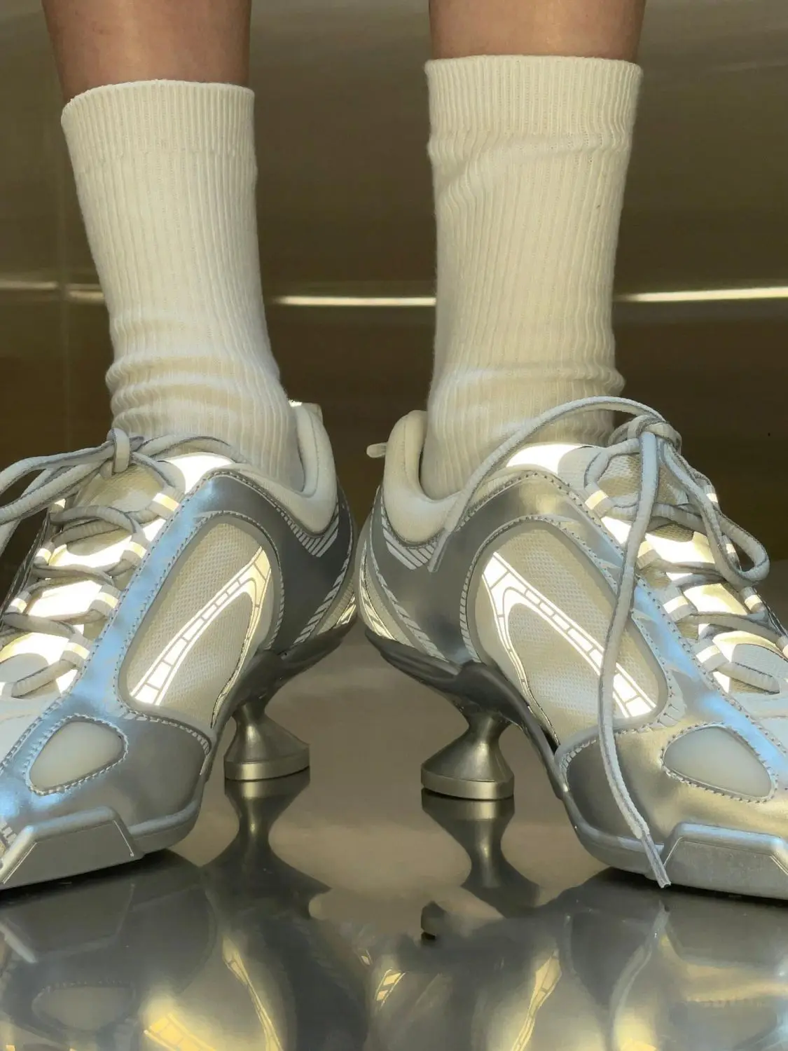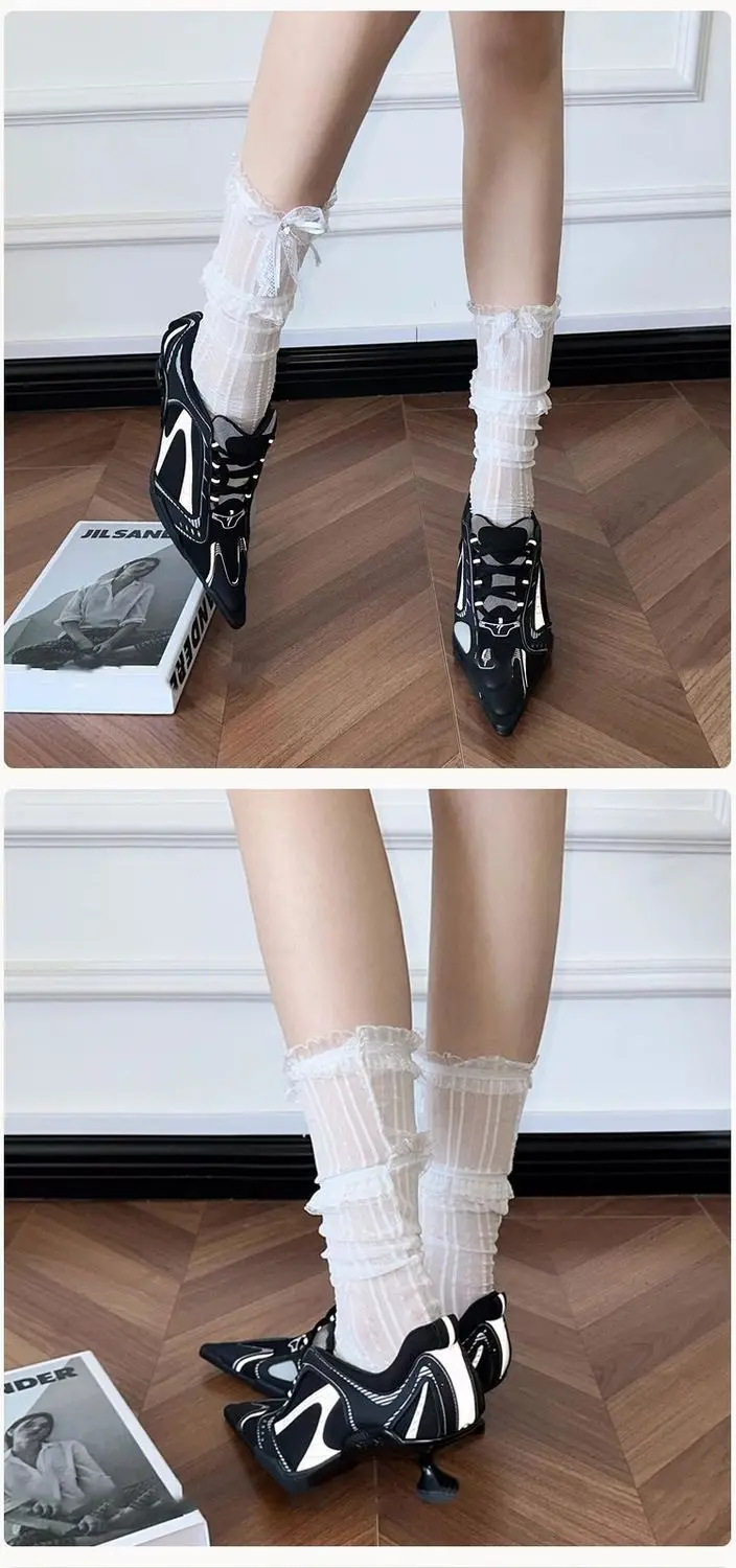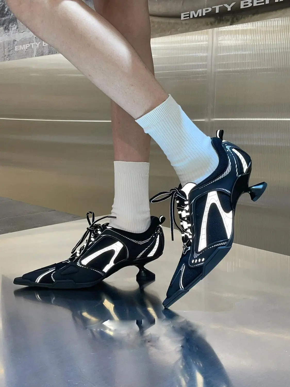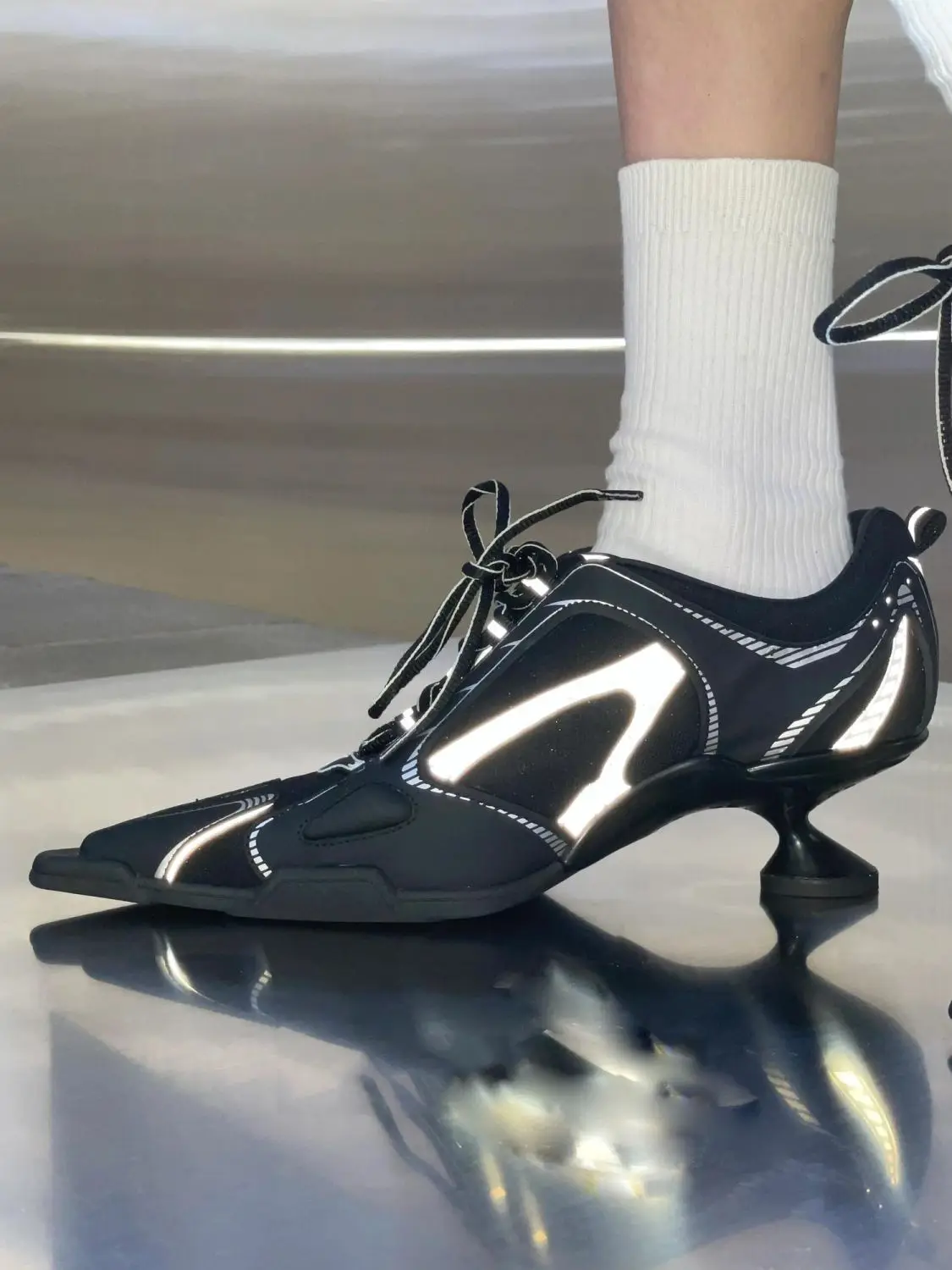 Elegant heel women's shoes Big size 43 Silver sheepskin Mesh Sports dance Training mid heel Fashion Pointed Toe Lace-up Pumps