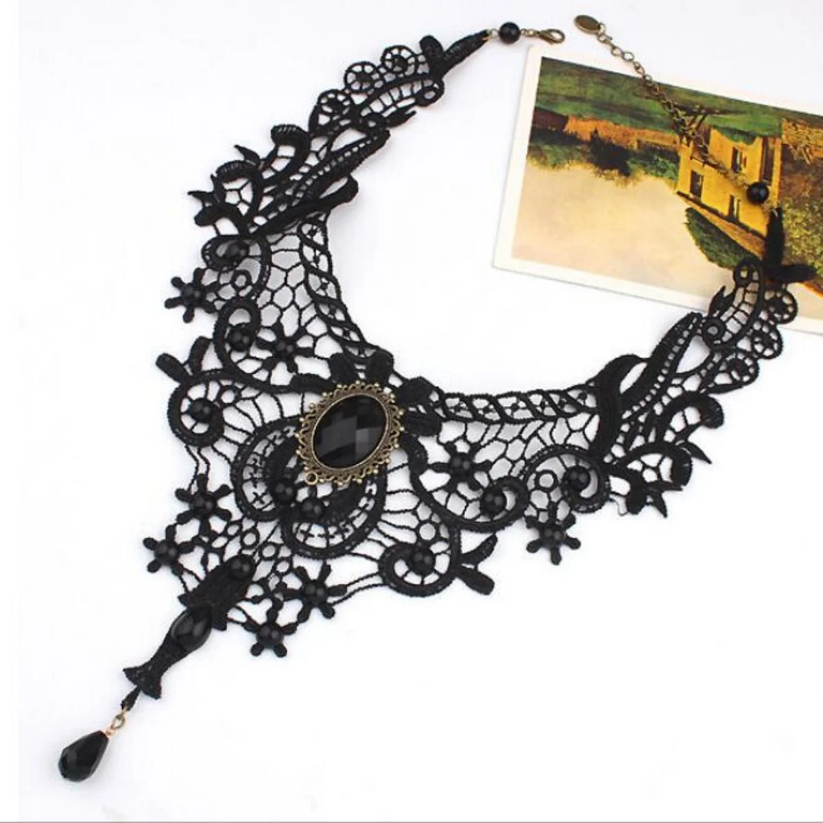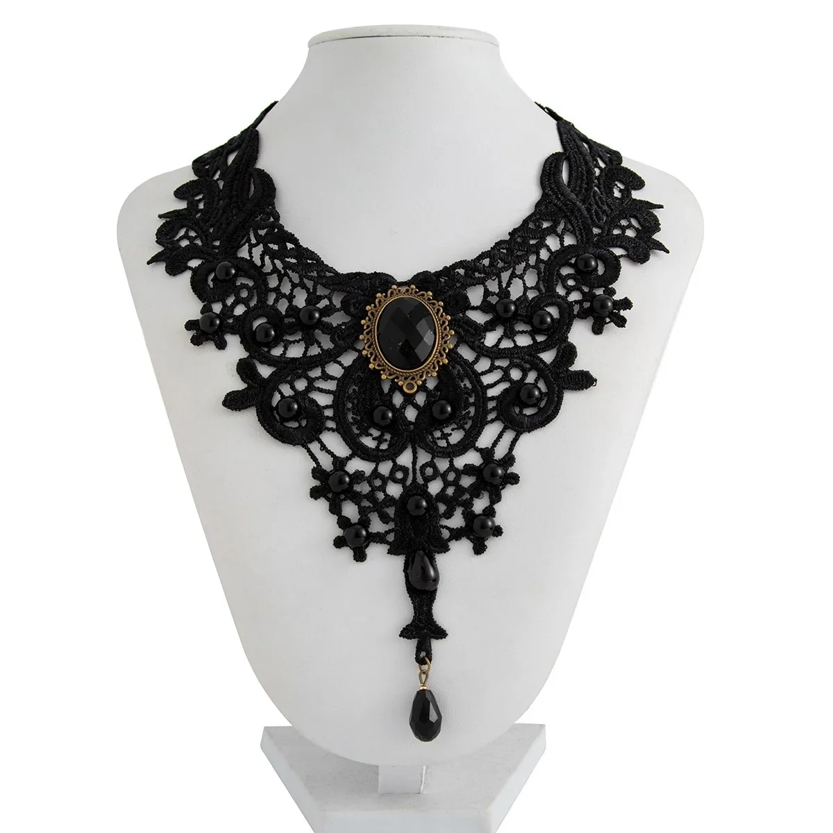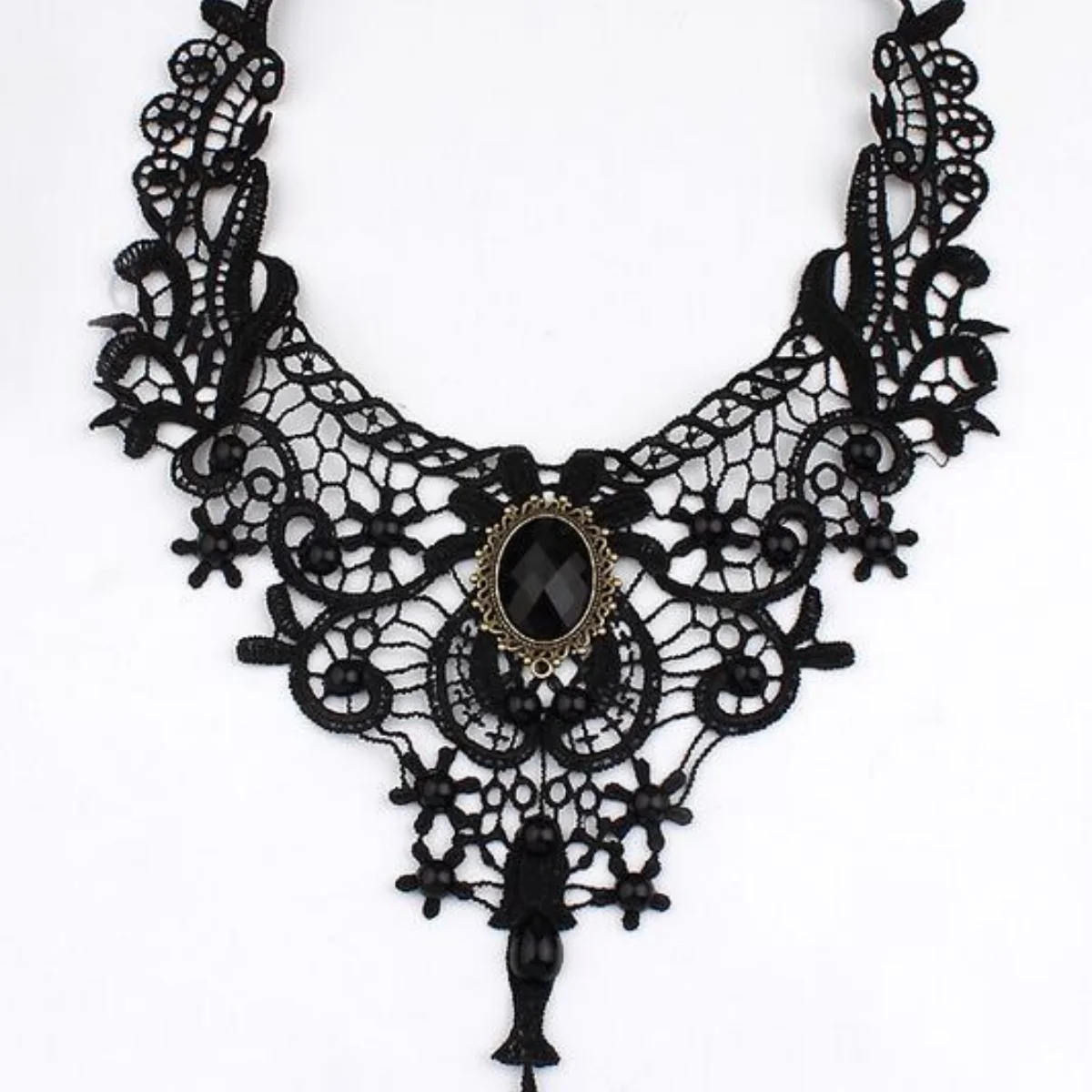 Fashion New Vintage Gemstone Black Lace Beads Choker Gothic Steampunk Style Stonego Gothic Collar Necklace ( Pack of 1/2)