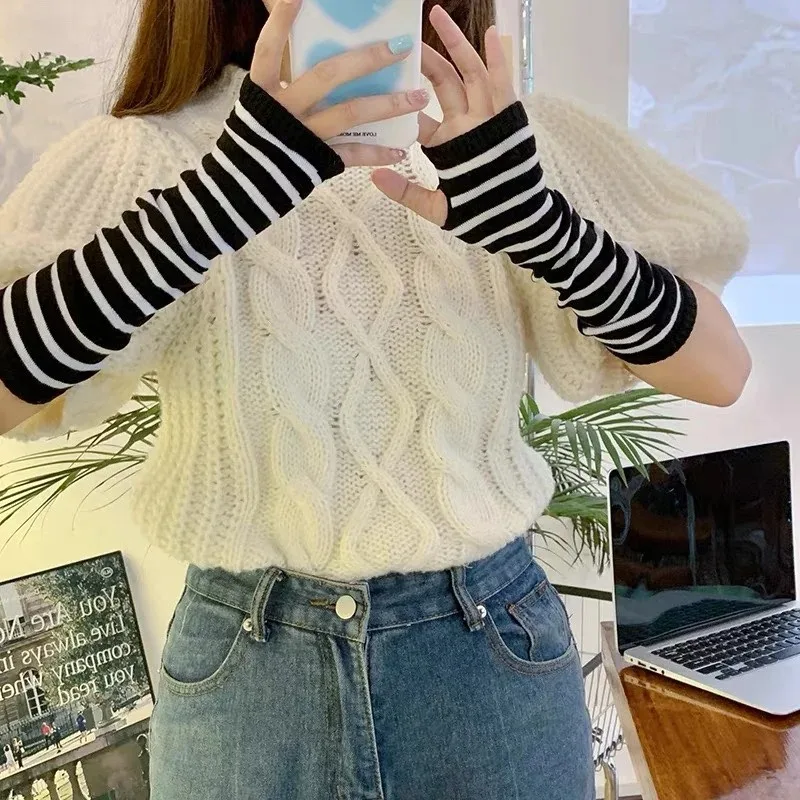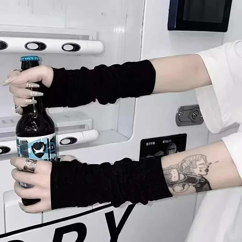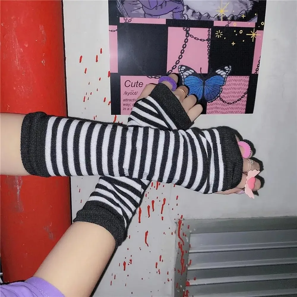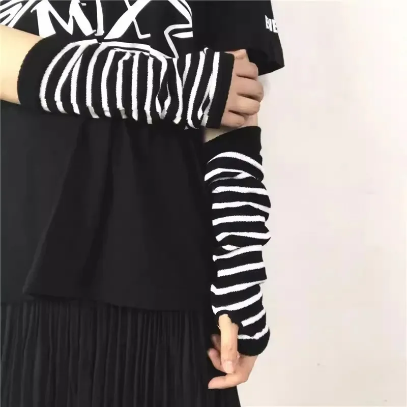 Gothic Anime Soft Knitted Gloves JK Girls Mittens Oversleeve Man Women Fashion Sun Block Cuff Fingerless Arm Warmers