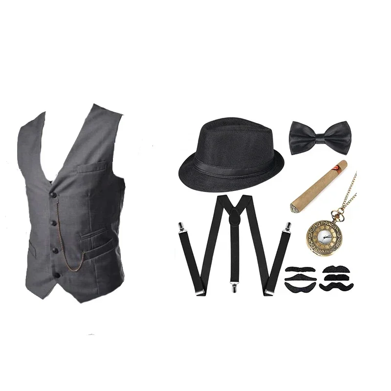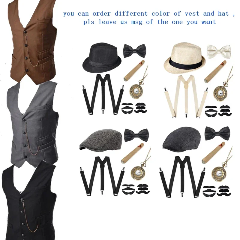 Gangster Costume And Accessories Set Steampunk WaistCoat Peaky Blinders Vest Pocket Watch 1920s Men Gatsby ☆★ww