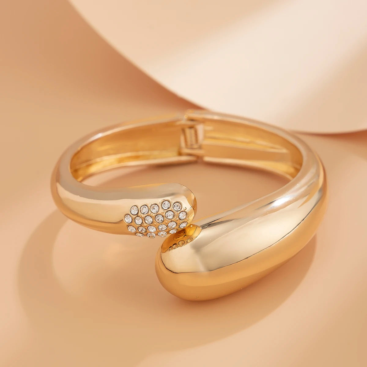 Ingemark Hip Hop Inlaid Rhinestones Water Drop Spring Bangle for Women Creative Irregular Chunky Bracelets Steampunk Jewelry Men