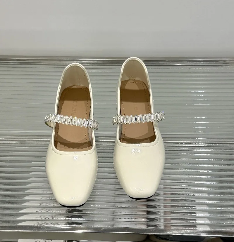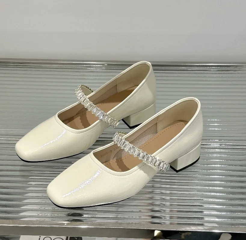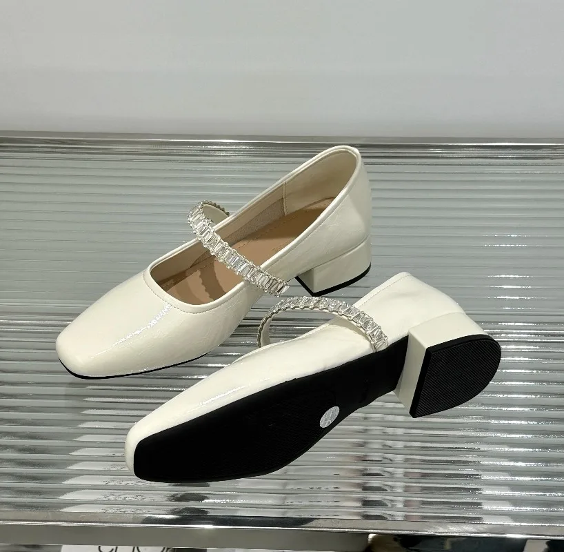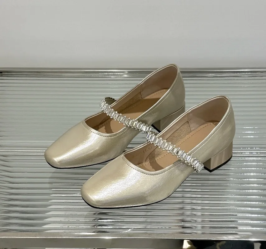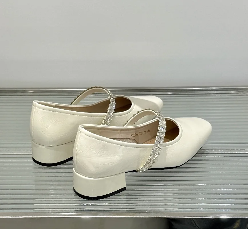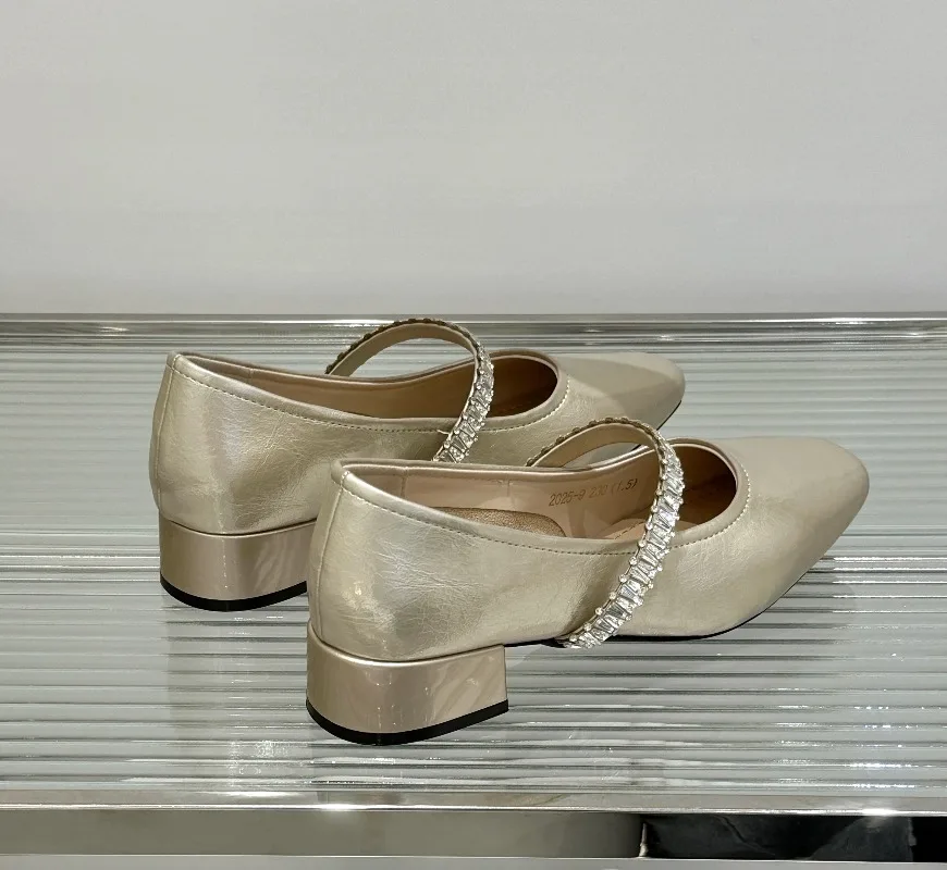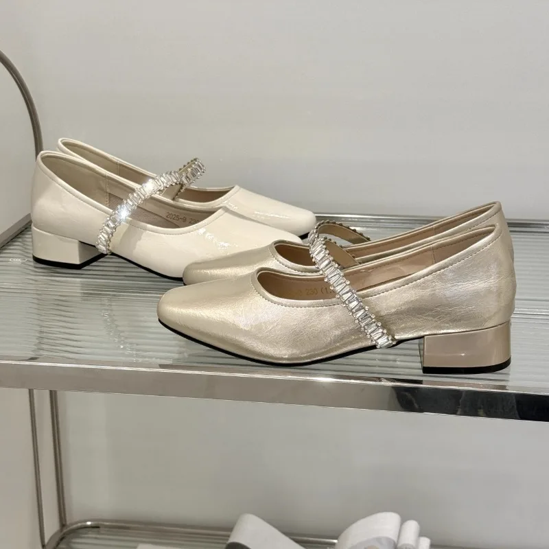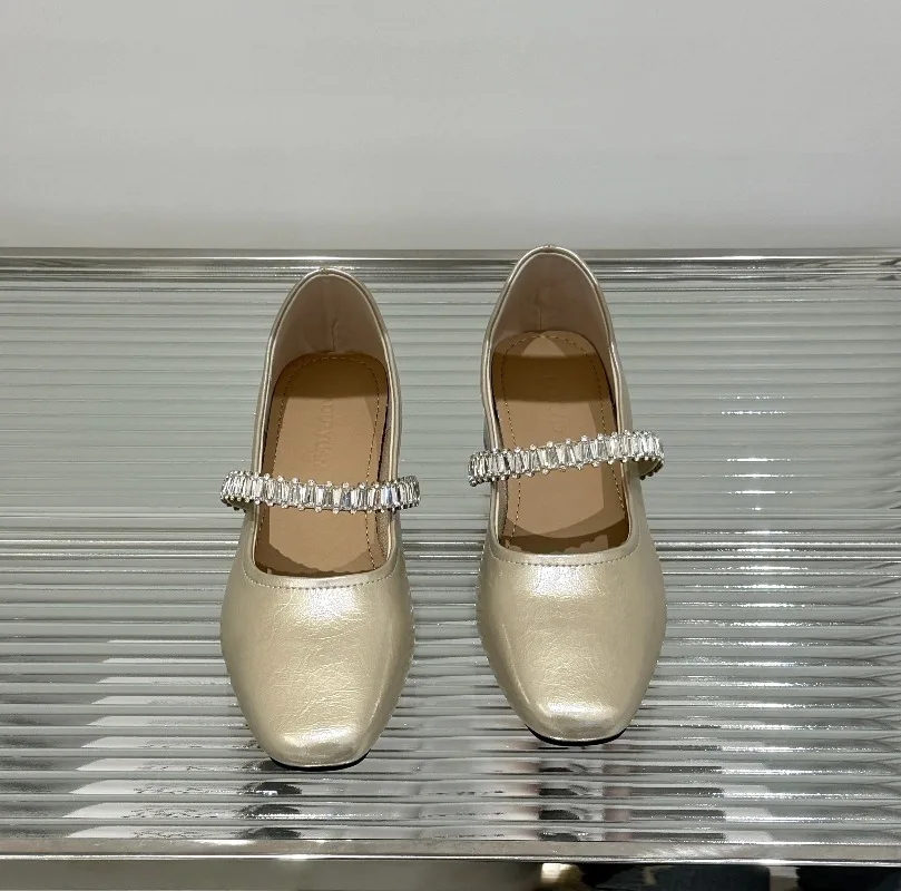 Pu Leather Concise Low Heel Pumps Women Shiny Crystal Soft Sole Non Slip Loafers Summer Light Square Toe Platform Office Shoes