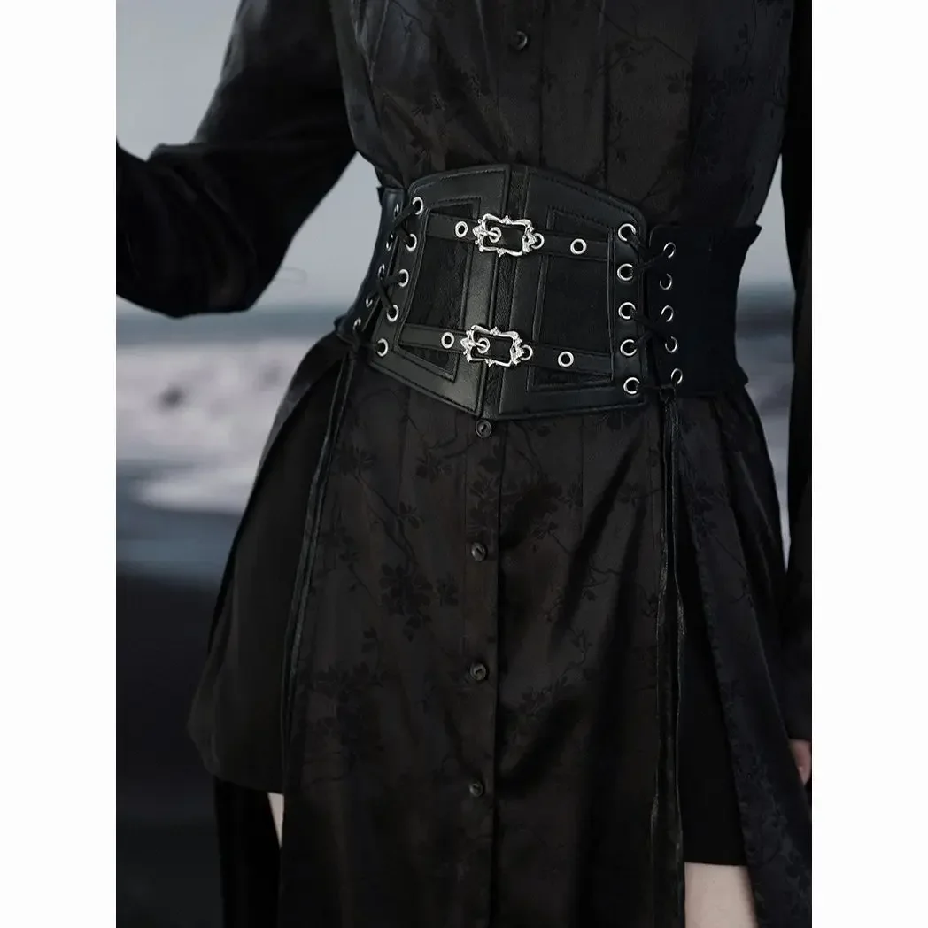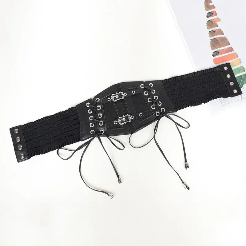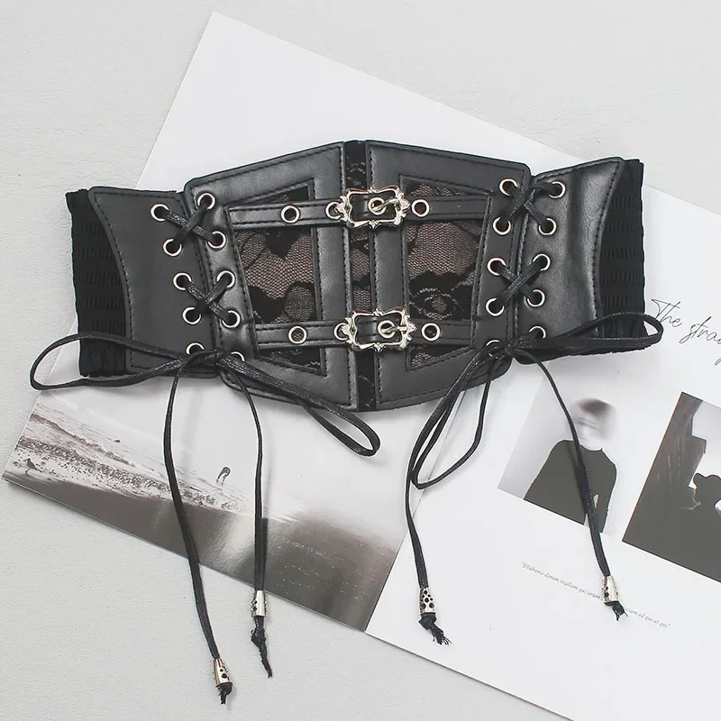 Retro Ladies Corset Belt Gothic Style Elastic Lace Pin Buckle Cummerbund Tie Rope Punk Accessory for Women Shirt Dress Belt