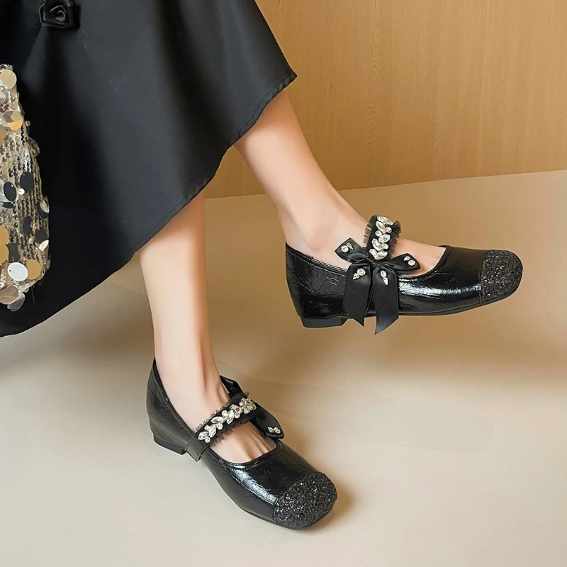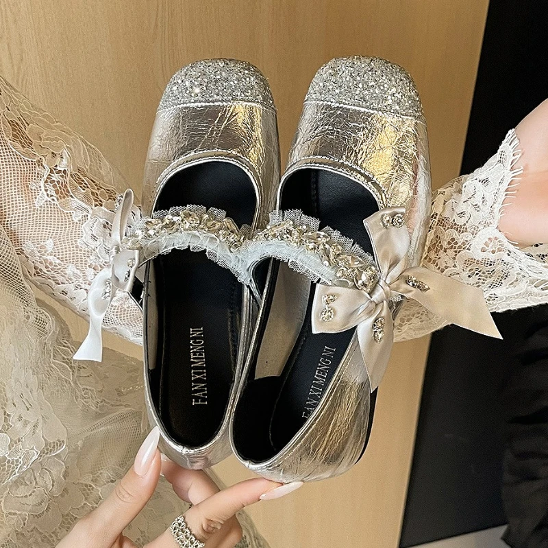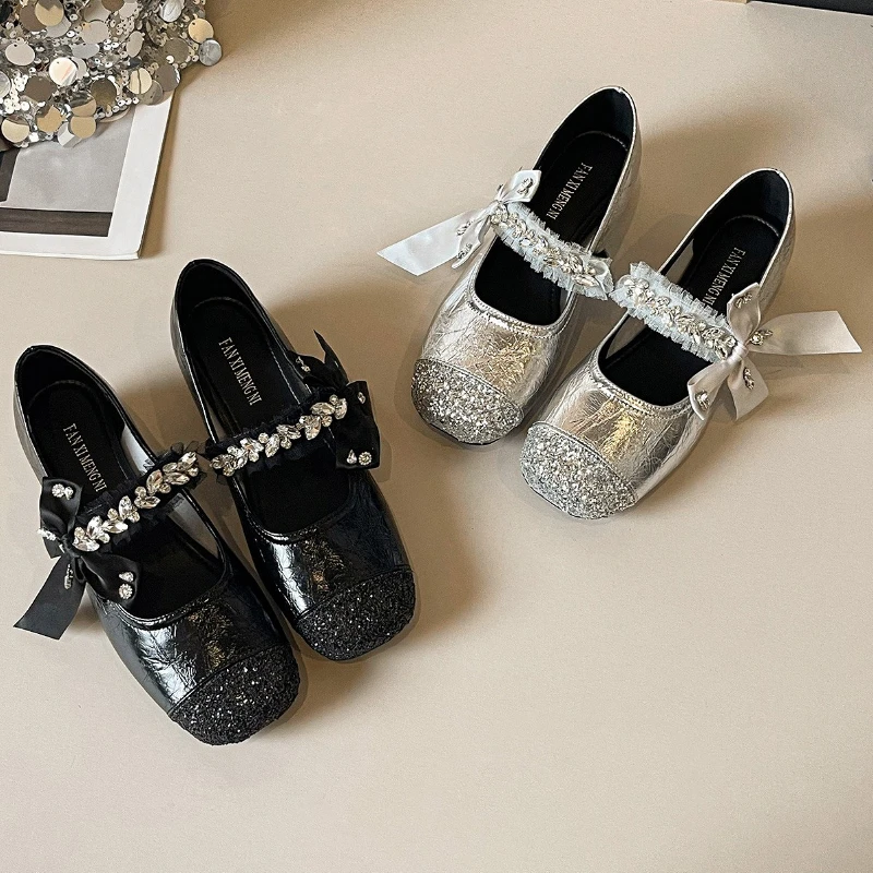 Shining Rhinestone Mary Jane Shoes Women Butterfly-Knot Fashion Shallow Comfort Casual Flats Shoes Elegant Dress Shoes Female