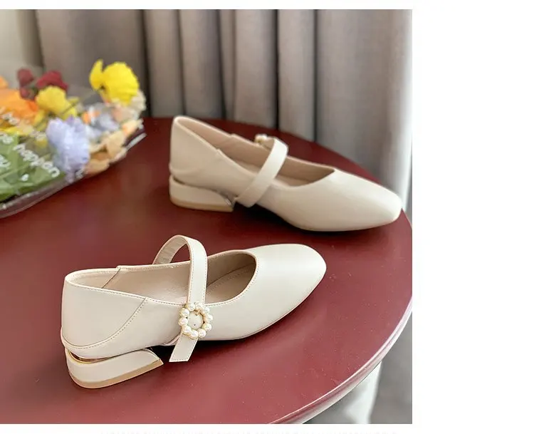 Autumn New Women Low-heeled Mary Jane Shoes Daily Solid Color Square Toe Female Office Single Shoes Bombas De Mujeres