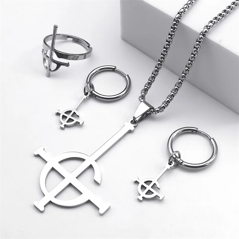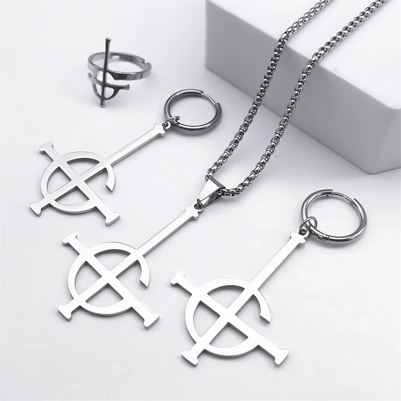 Stainless Steel Jewelry Set Ghost BC Rock Band Pendant Necklace The band Ghost Ghoul Chain Necklaces Fashion Earring Ring collar
