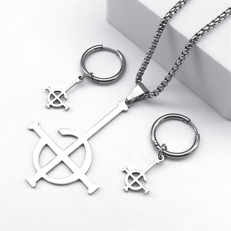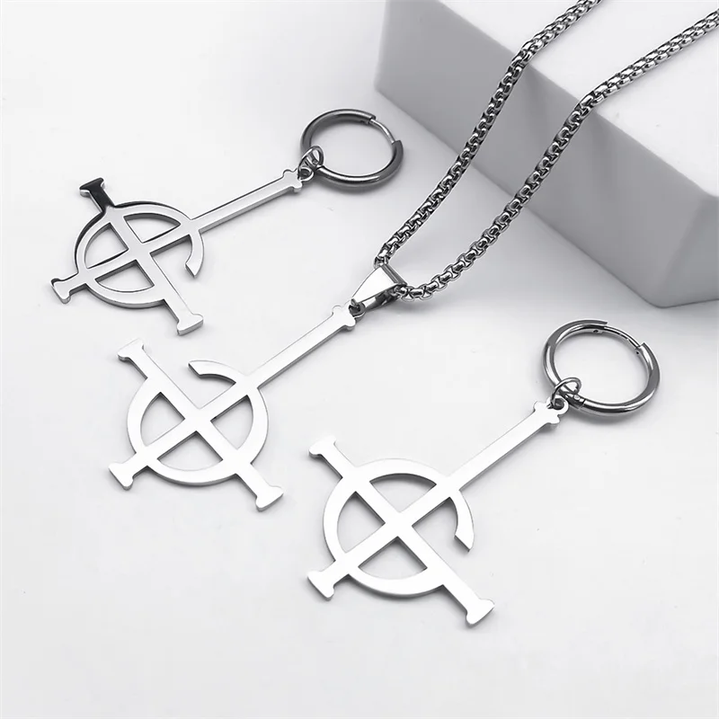- Stainless Steel Ghost Rock Band Pendant Necklace The band Ghost Ghoul Chain Necklaces Earring Bracelet Ring Jewelry Set collar