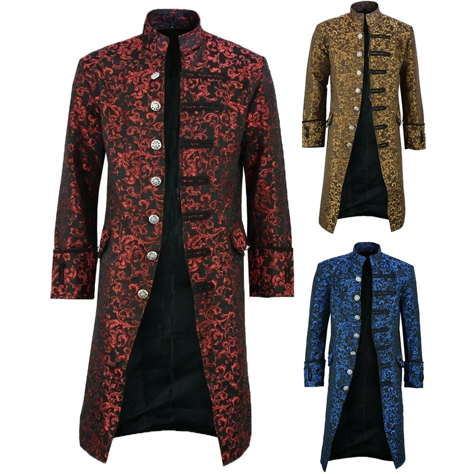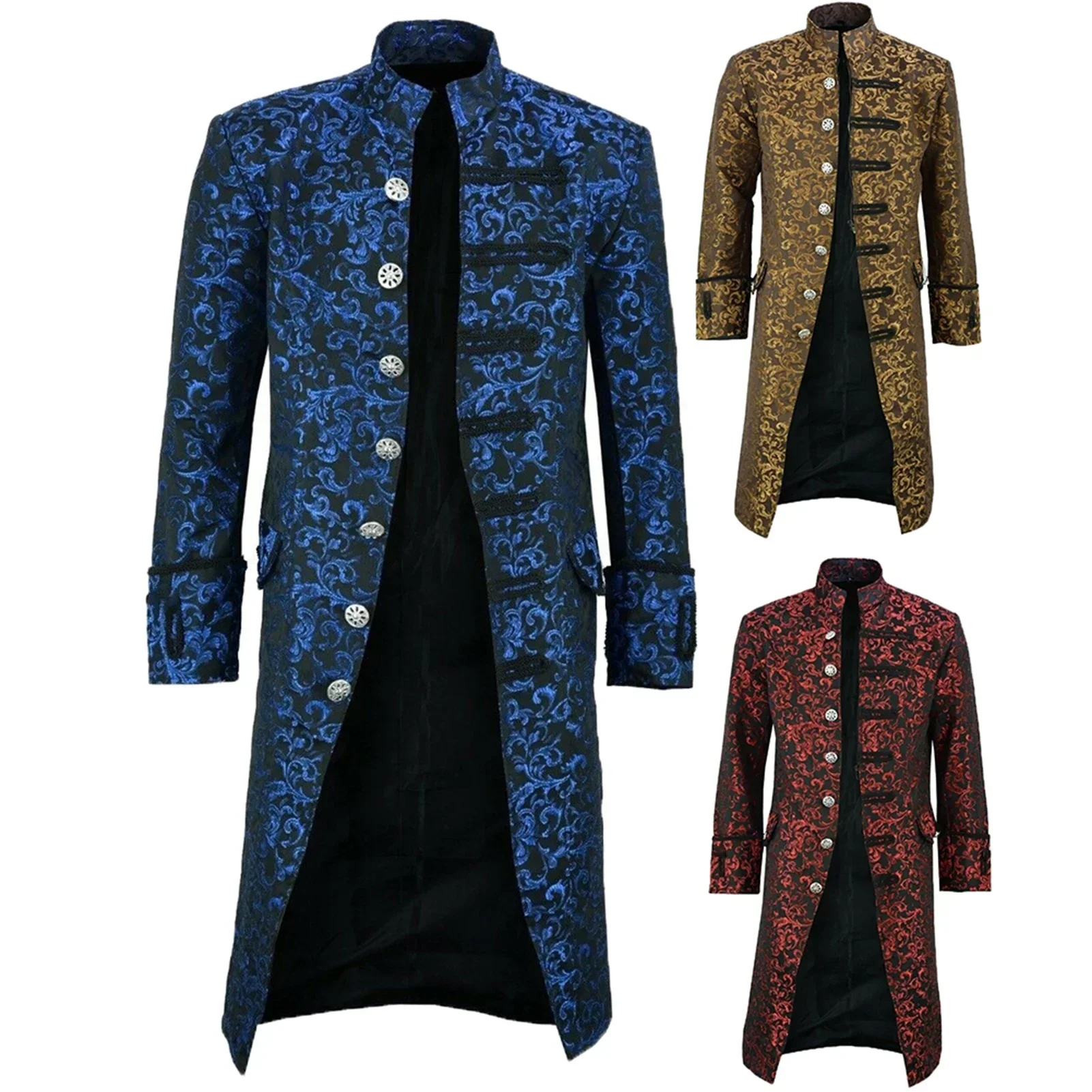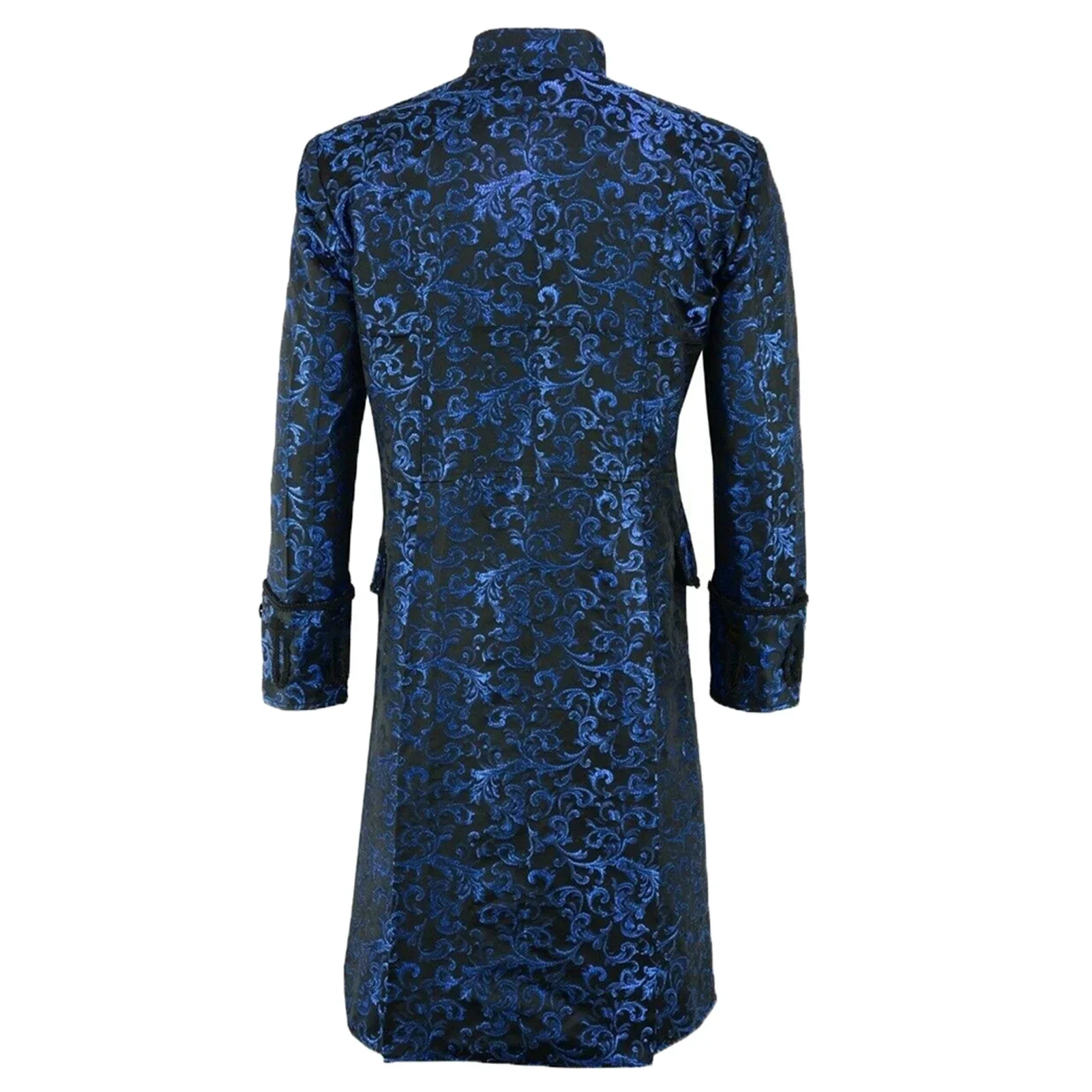 Halloween Victorian Men Jacquard Weave Stand Collar Long Sleeve Coat Outwear