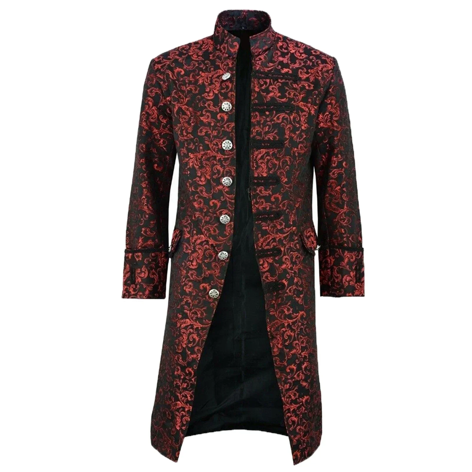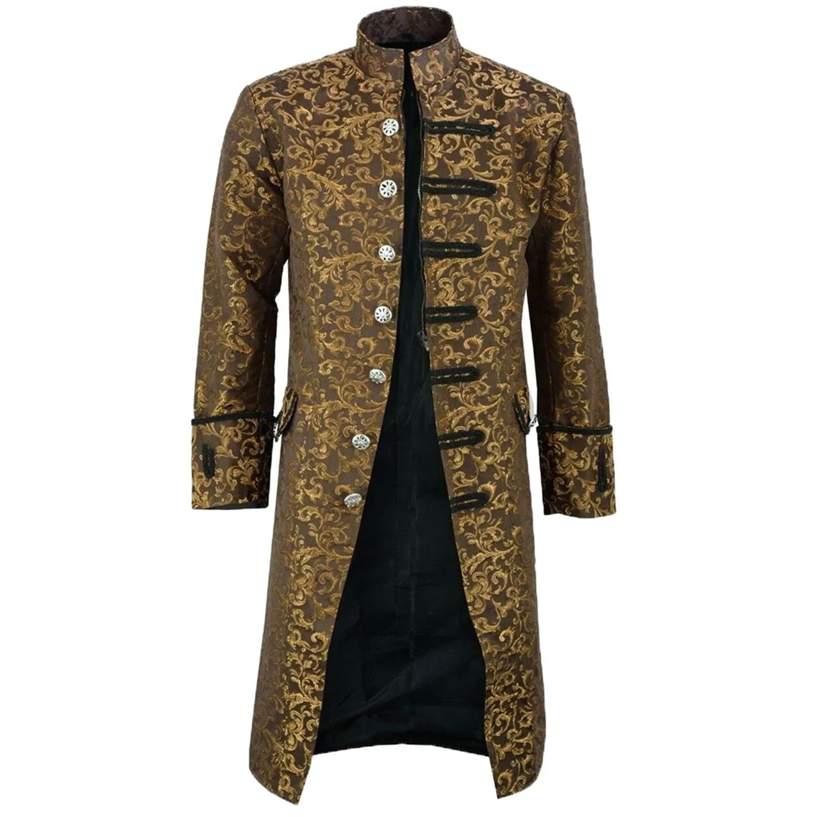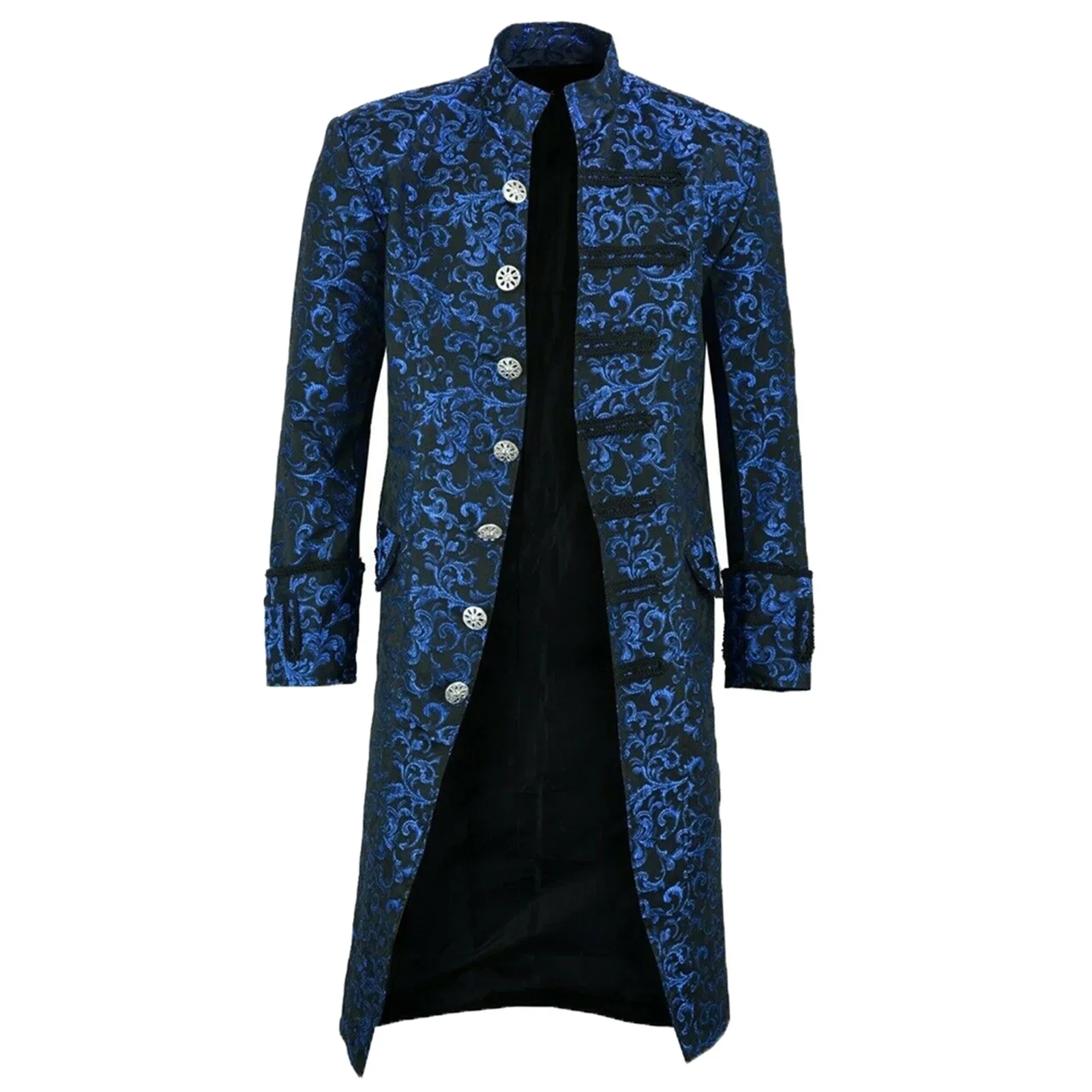 Halloween Victorian Men Jacquard Weave Stand Collar Long Sleeve Coat Outwear