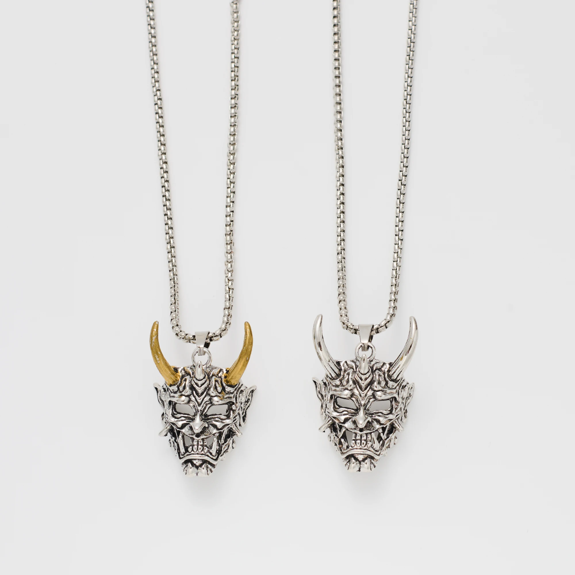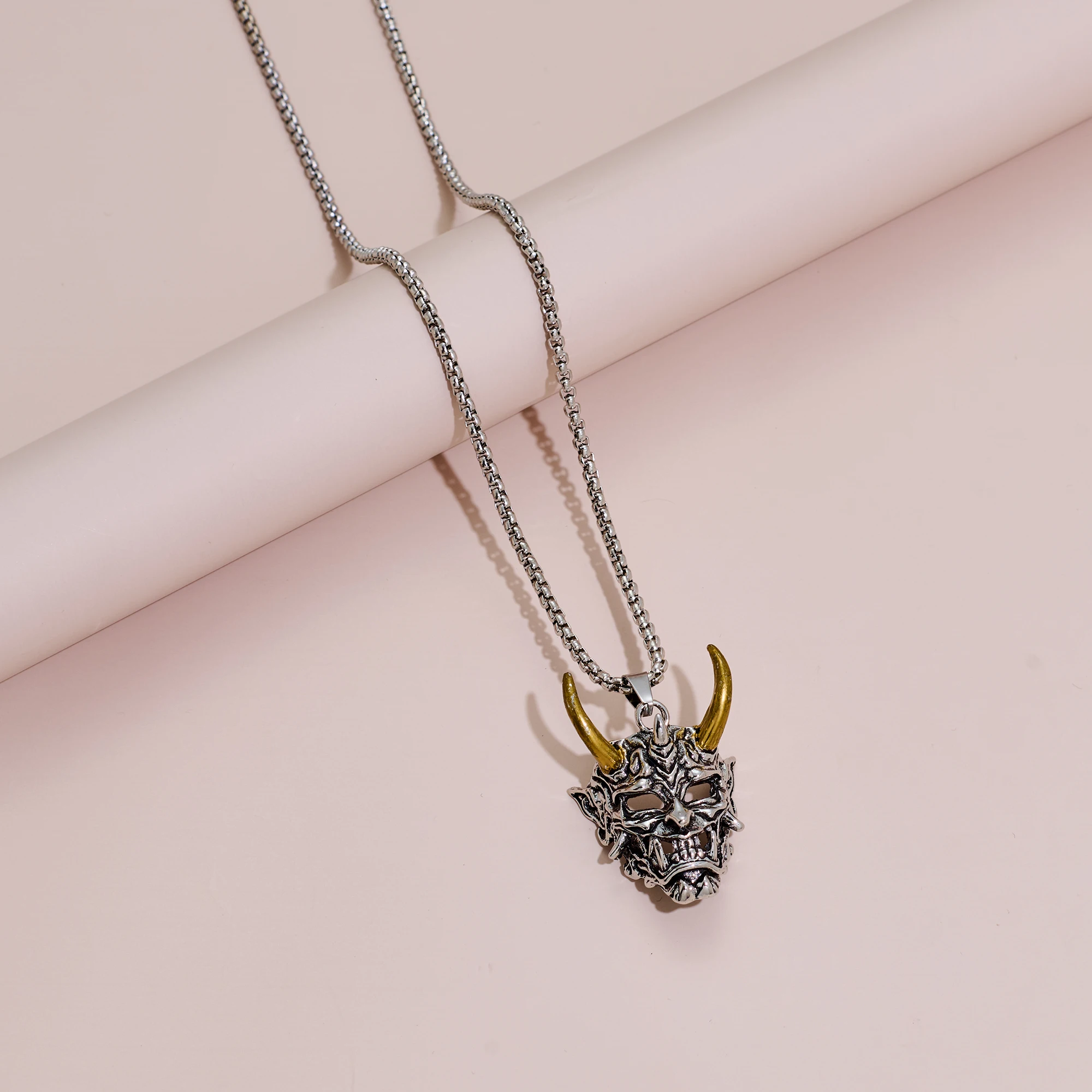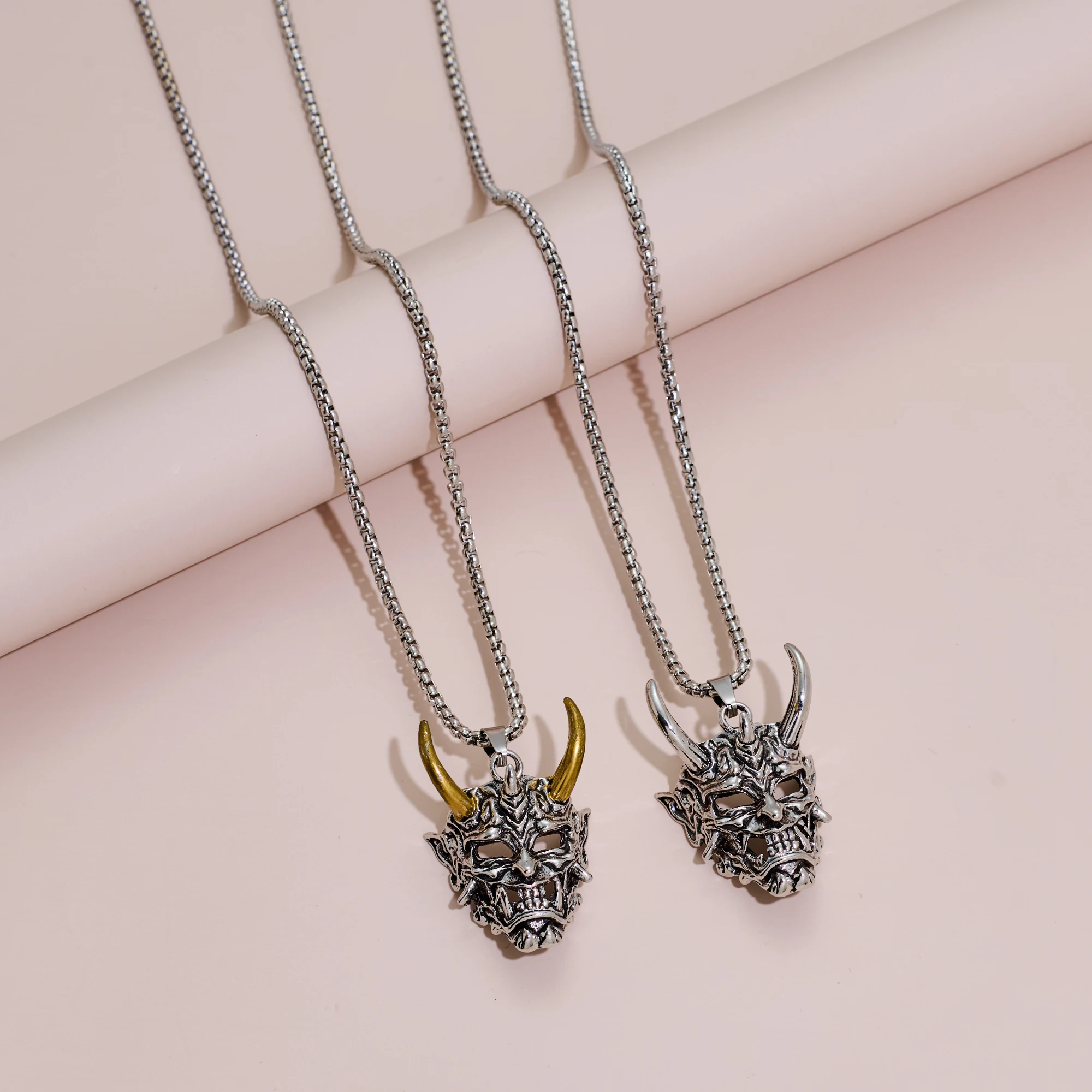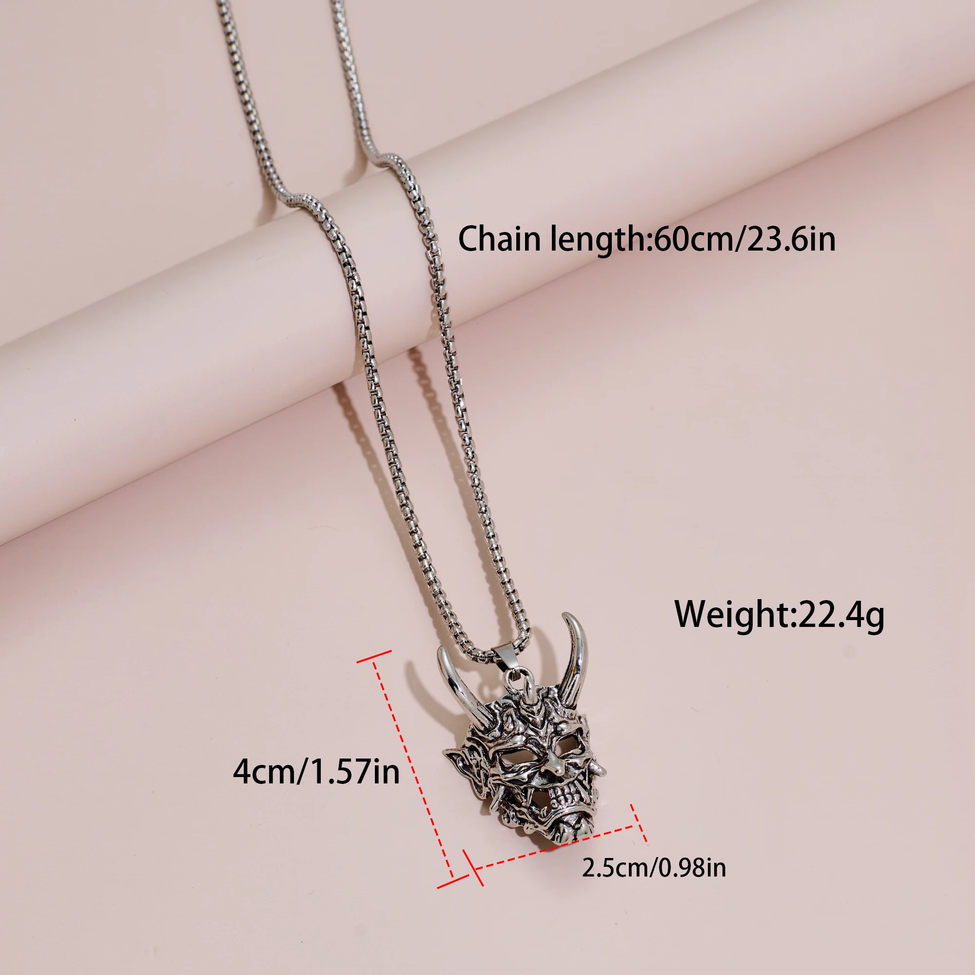 Vintage Punk Demon Mask Samurai Ghost Pendant Necklace Men's and Women's Long Chain Hip Hop Rock Party Necklace Gift Accessories