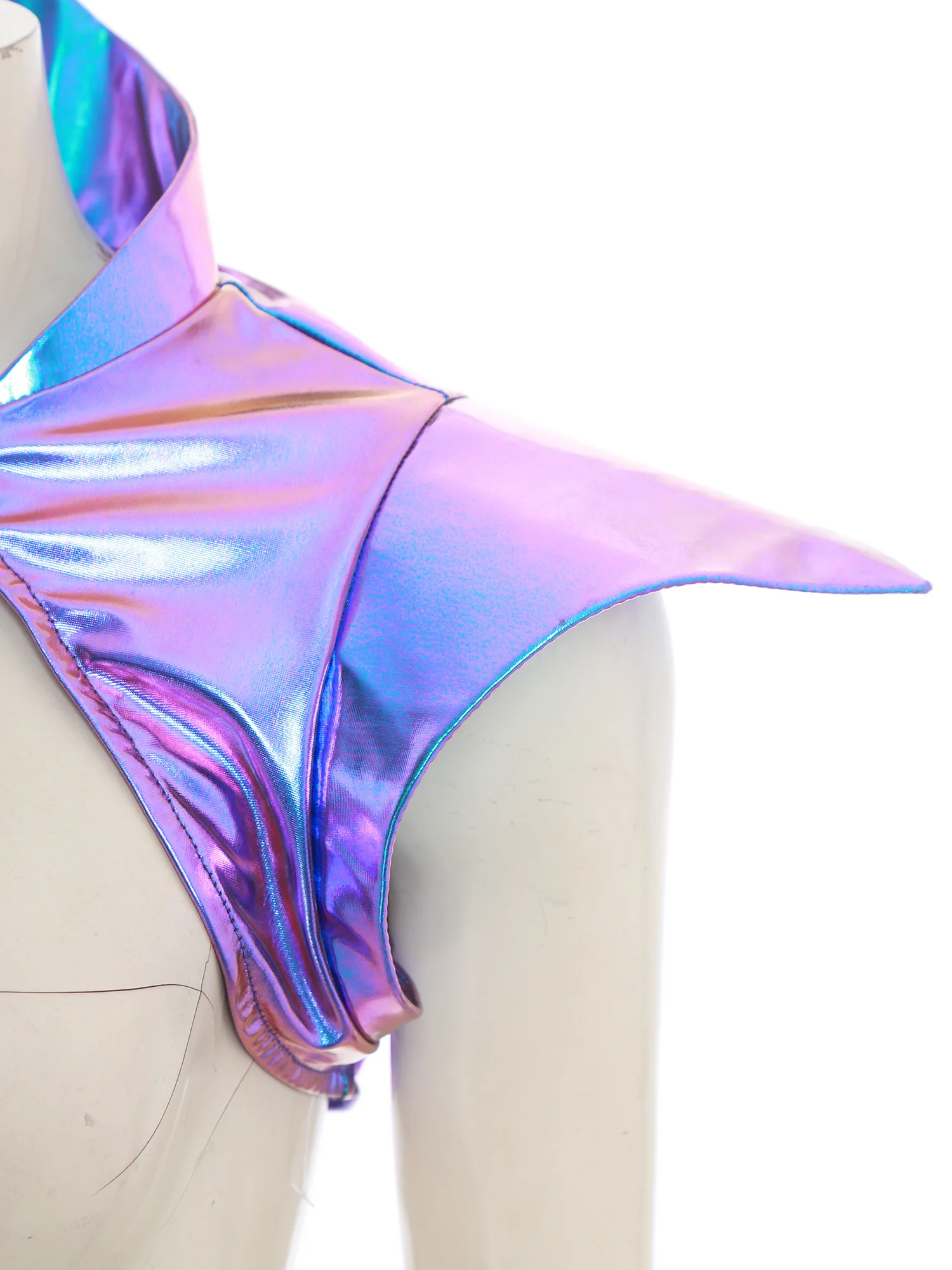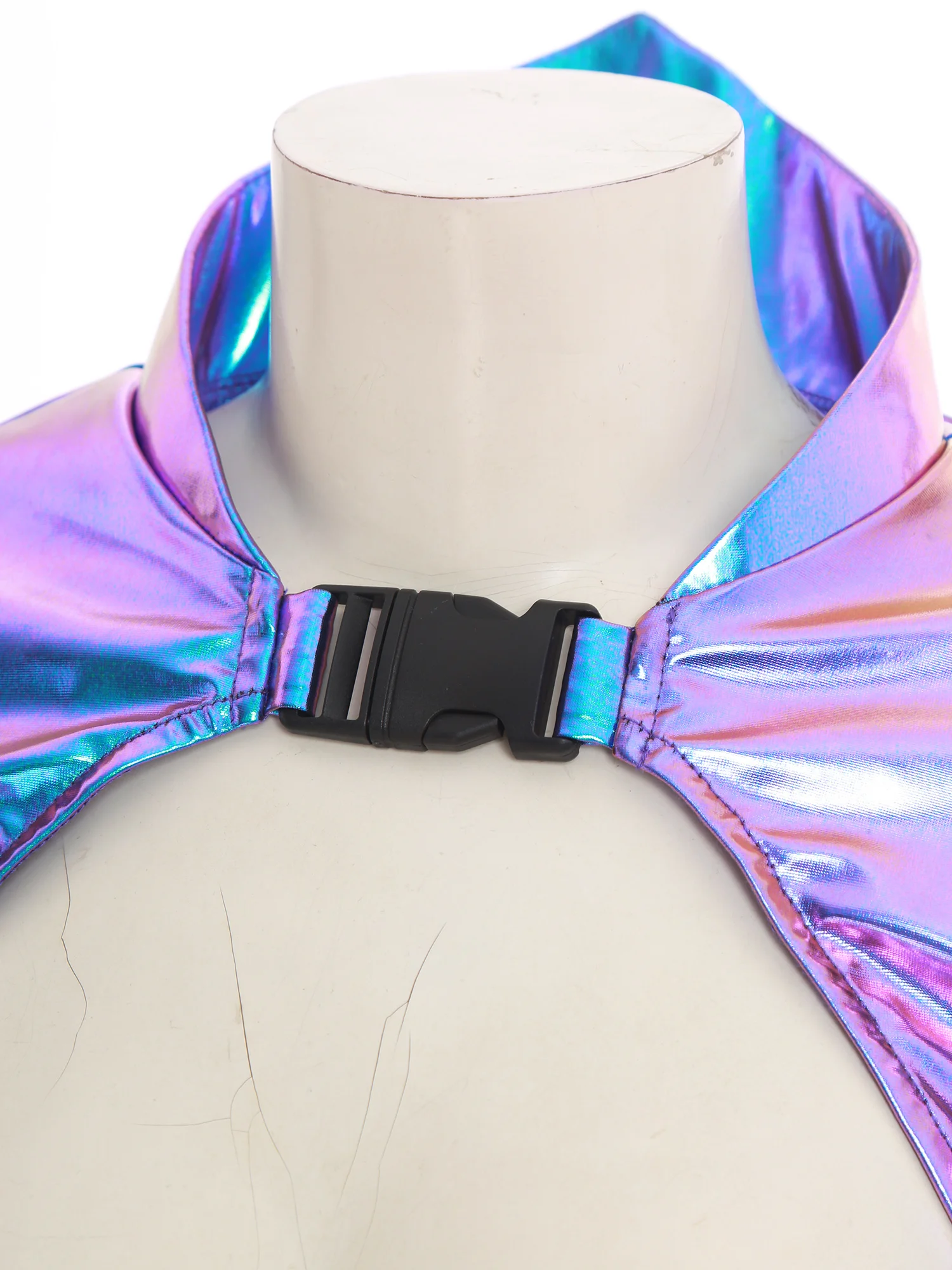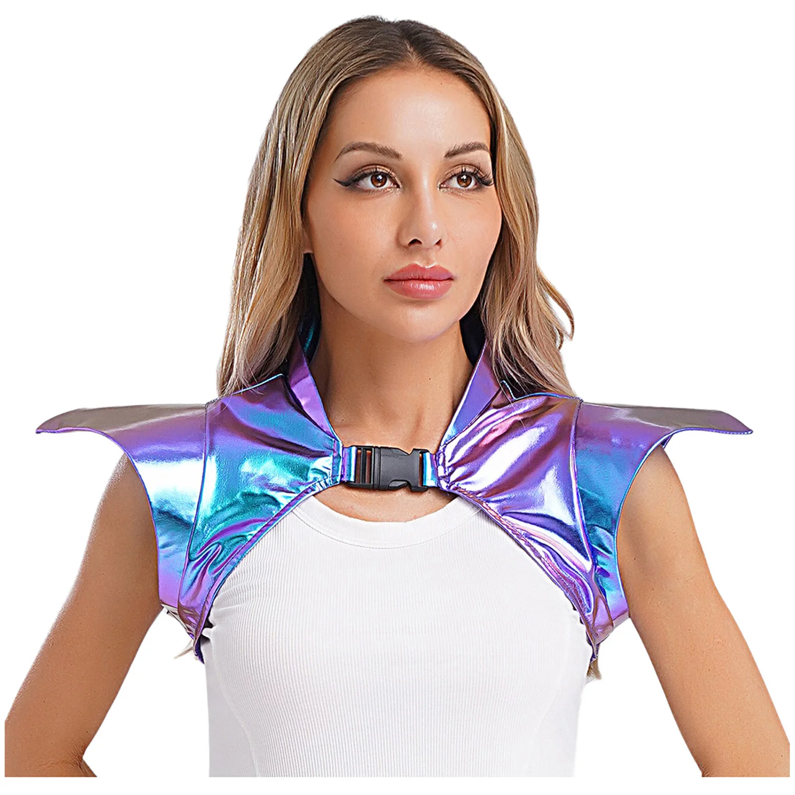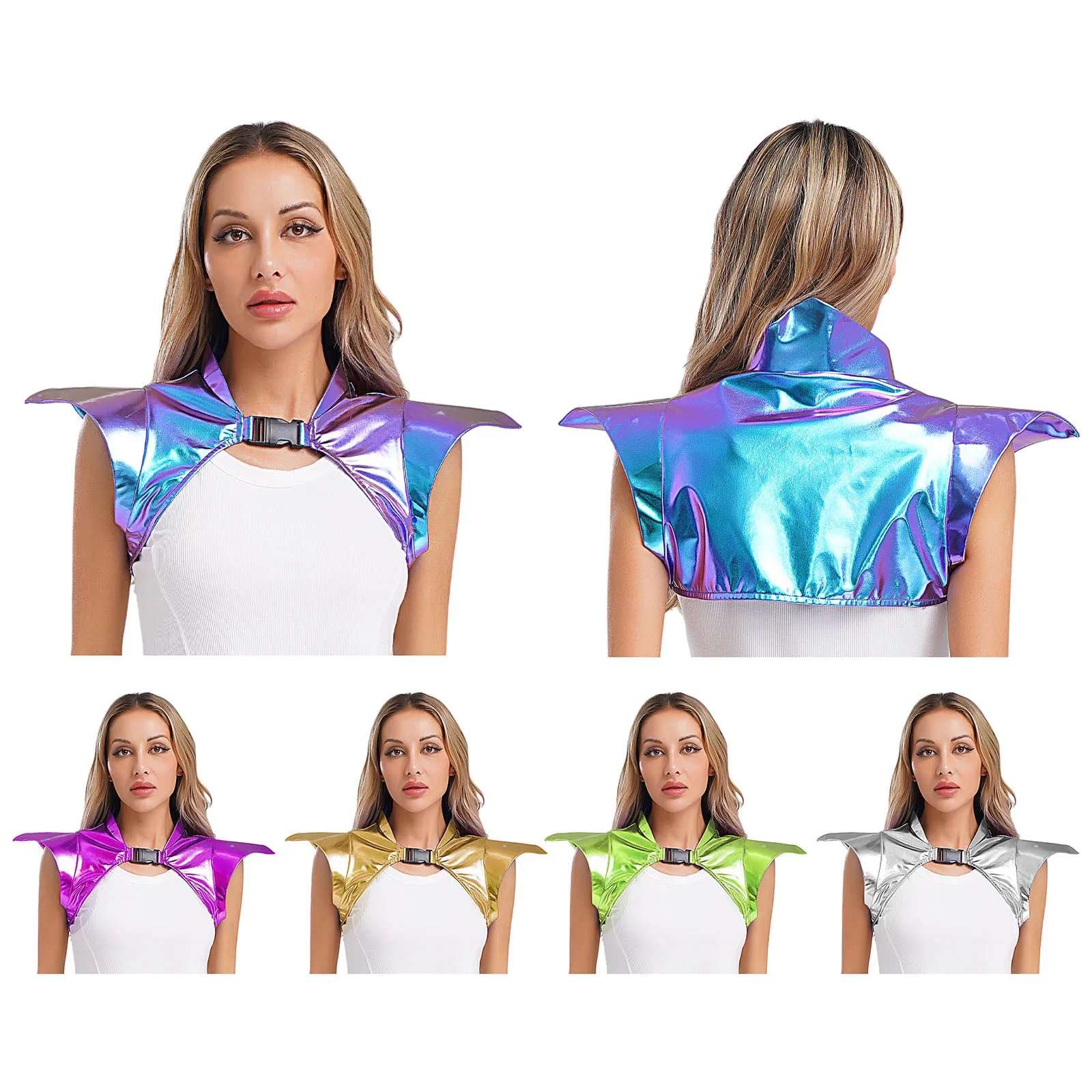 Women Shiny Metallic Gothic Armor Shrug Steampunk Gothic Shoulder Epaulet Alien Robot Astronaut Shrug Crop Top Halloween Costum