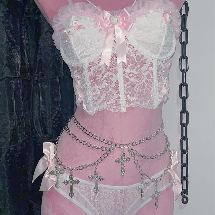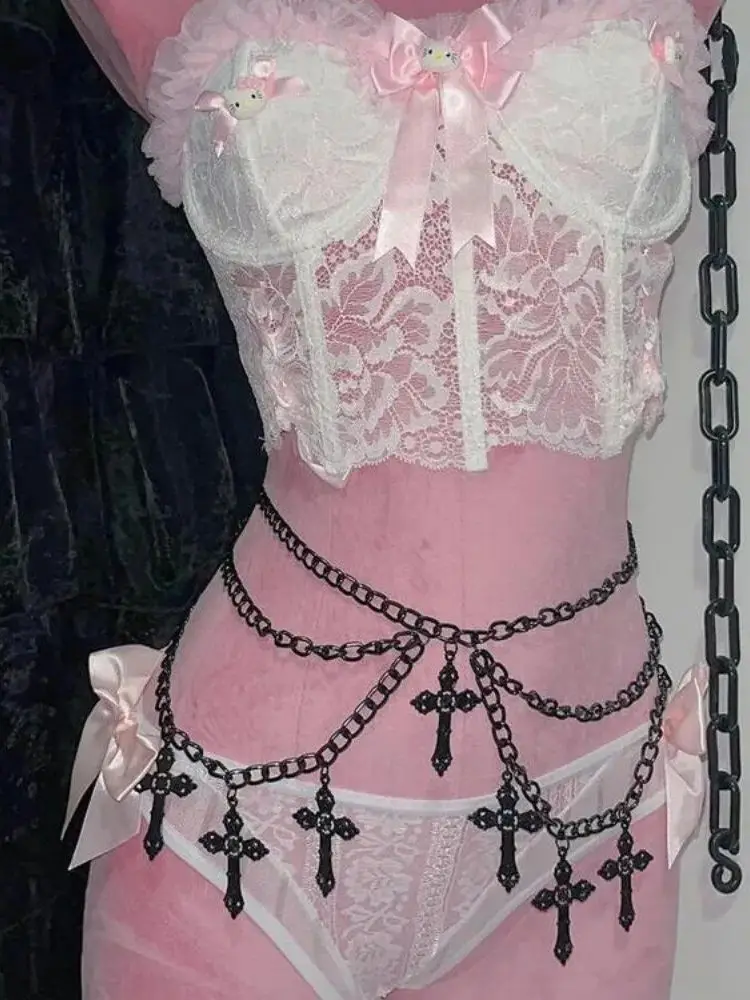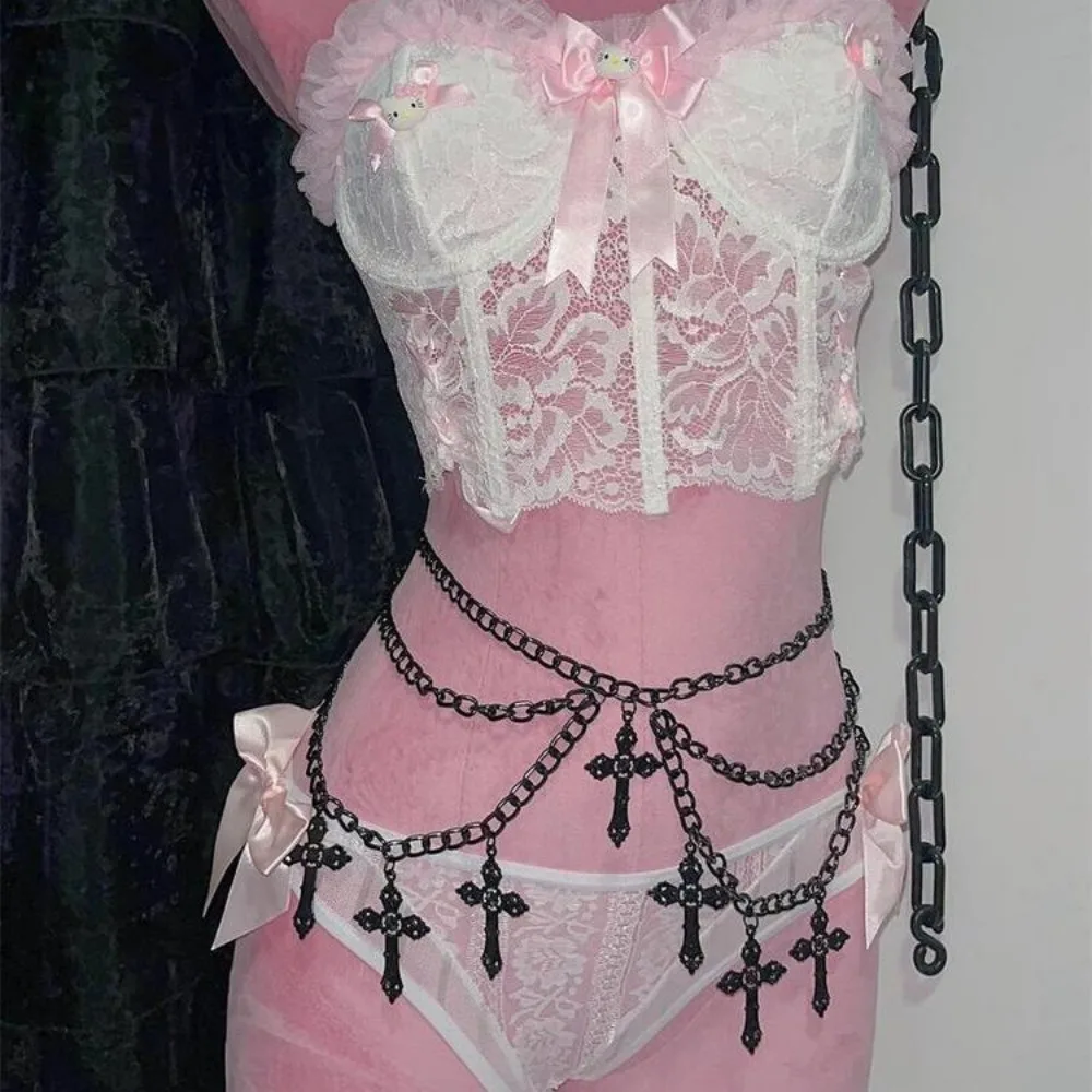 Chain Belt for Women, Gothic Cross Streetwear Waist Chain, Metal Skirt Jeans Pant Chains, E-girl Y2K Aesth